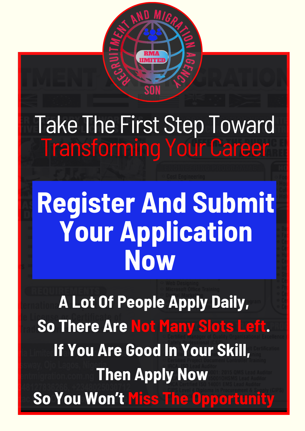 NOTE WE ARE ABOUT TO PRESENT TO YOU A RARE AND VALUABLE OPPORTUNITY BUT HERE IS THE THING IT DOES NOT MATTER HOW SMALL OR BIG YOUR CURRENT CRAFT, JOB OR PROFESSION IS WHAT REALLY MATTERS IS HOW GOOD YOU ARE IN WHAT YOU ARE DOING